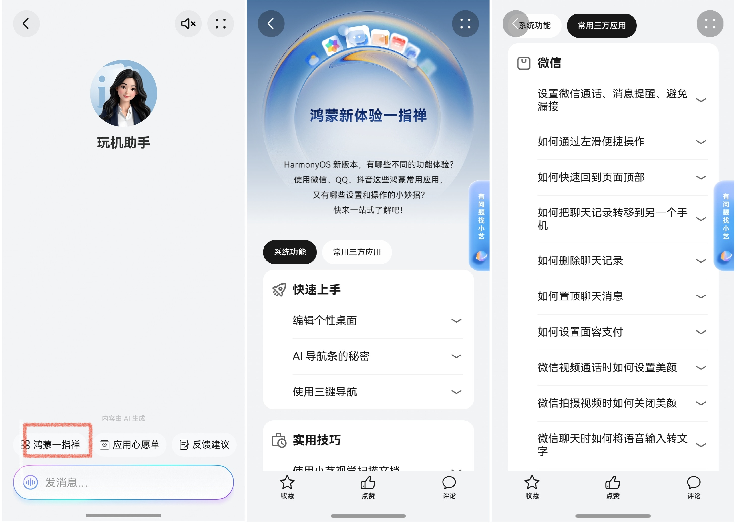 另外,“鸿蒙一指禅”板块还汇总众多系统功能和热门应用的实用技巧,比如编辑个性桌面、使用三键导航、设置微信通话或应用权限等,堪称玩转鸿蒙6的随身说明书。
