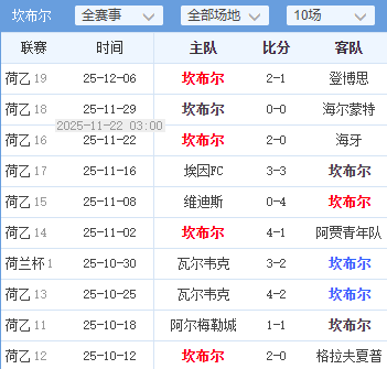 2. 主场劣势与防线危机:多德勒支主场战绩本就乏力,加之目前后防线遭遇严重伤病,能否顶住对手进攻存疑。