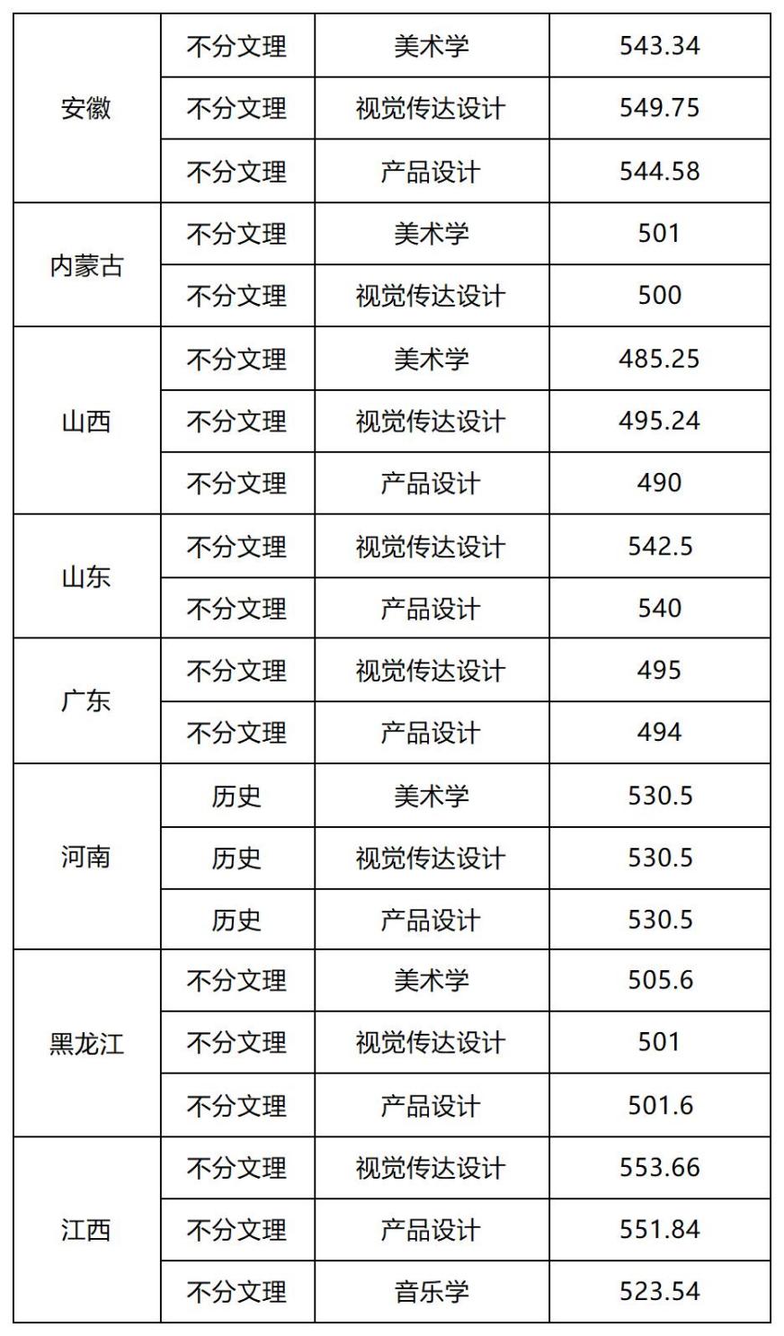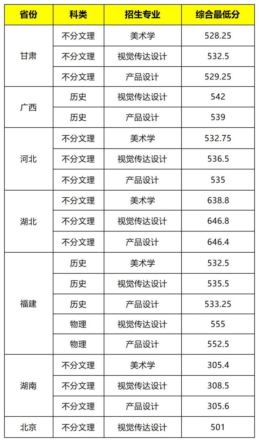 以下为厚德路画室整理的华侨大学2024年美术与设计学类专业录取分数线。