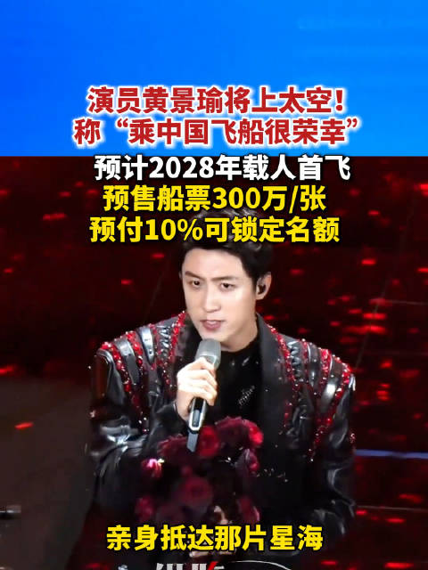 “很荣幸乘坐中国人自己的飞船,亲身抵达那片星海。”演员黄景瑜在视频中微笑着宣布。