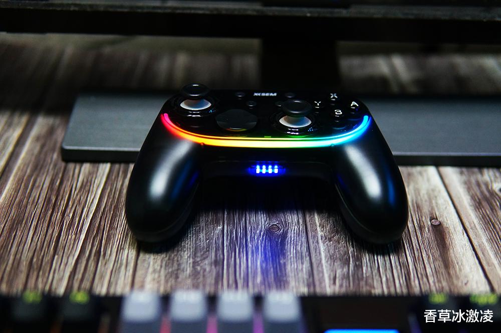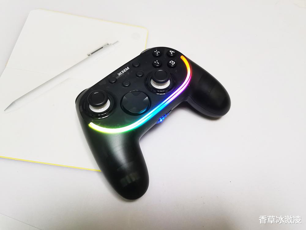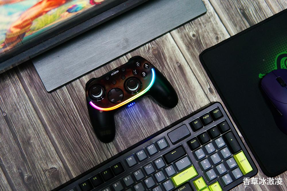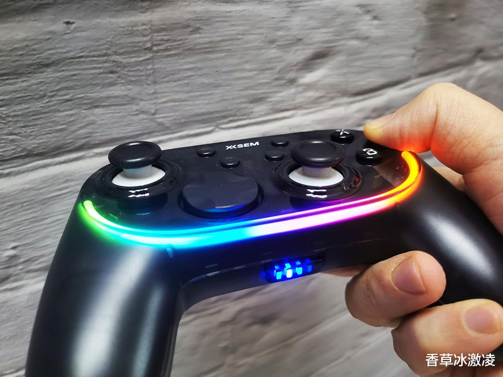 拿到西圣GC1的第一时间,其外观设计便让人眼前一亮。不同于传统游戏手柄的纯色塑料机身,GC1采用了半透明幻雾晶透机身设计,通过纳米雾化与半透光学工艺的结合,让内部机芯若隐若现,既营造出强烈的科技感与未来感,又具备出色的抗指纹耐磨特性。手柄正面配备了炫酷的RGB氛围灯带,支持10种可调灯效模式,通过智能算法驱动,灯光流转顺滑自然。