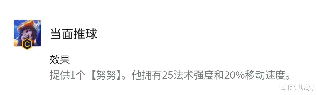 努努的专属个人强化,提供25%的法强和移速,拿到这个强化的努努伤害有质的提升,特别是搭配小天才或者吉祥物,一星的努努每个回合都能打5000伤害,因为努努的机制不同,需要一直动,随着时间的推移,球会越来越大,造成的伤害也就越高,有移速的加成还可以躲避很多技能。