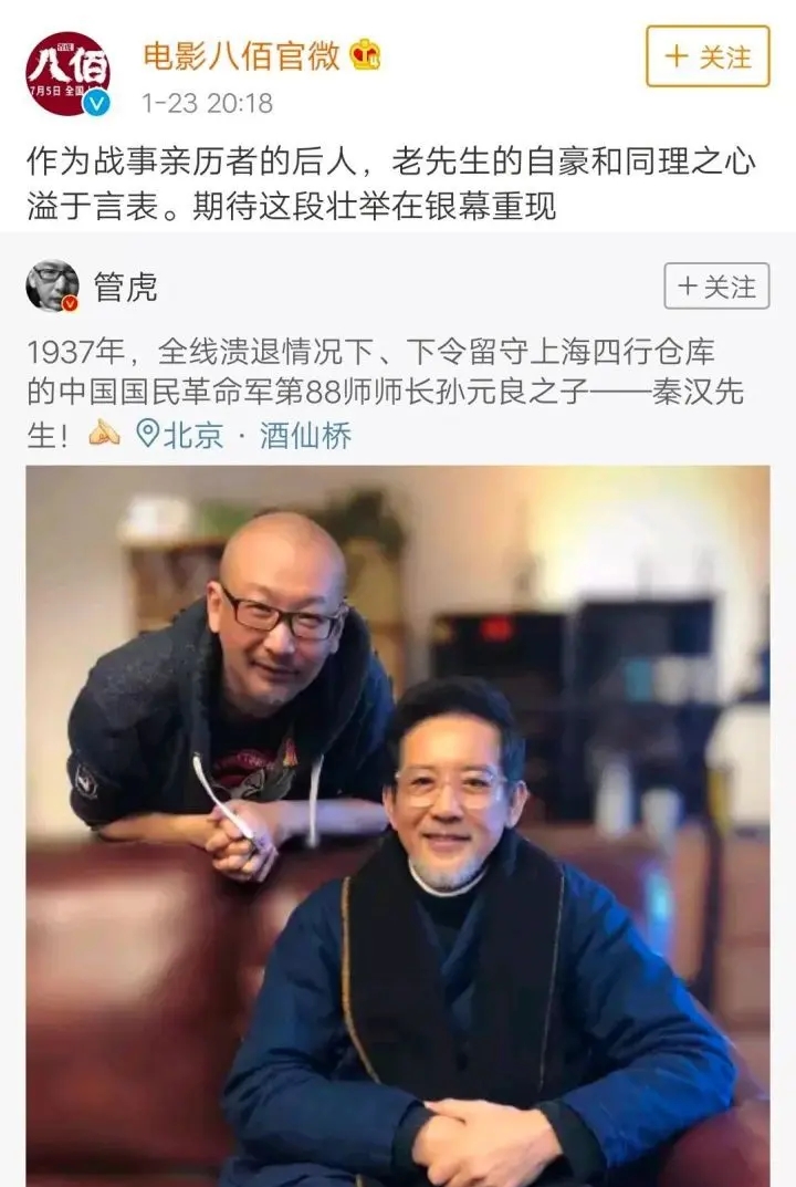 这样一个人,管虎借他来宣传《八佰》这部电影,真是大错特错。他更该去寻找那四百个战士的后人来宣传,而不是找孙元良的儿子秦汉。