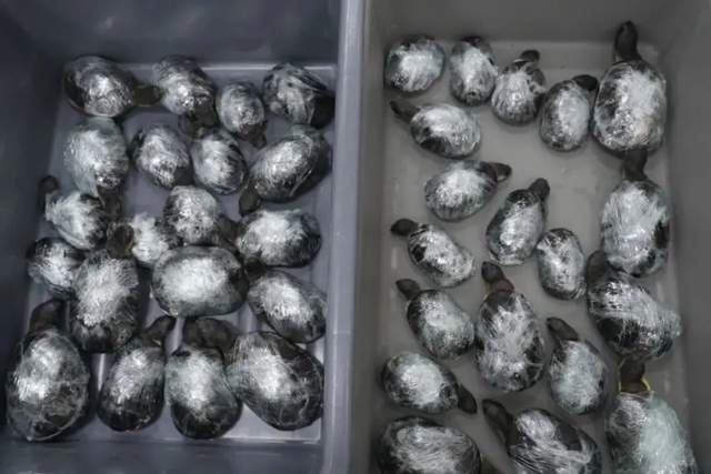 海关关员小心翼翼地将这些乌龟解下,它们终于重见天日。而这些走私者的违法行为,也再次印证了"天网恢恢,疏而不漏"的道理。