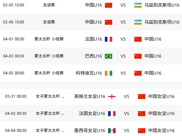 蒙太古杯之前,中国U-16男足将在2月3号、6号两次迎战乌兹别克斯坦。