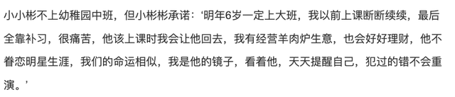 你们想啊,哥哥7岁的时候还在拍电影,那小学肯定没法正常上的。更早些时候,彬爸还信誓旦旦说孩子该上学就会让他去,自己就是因为接戏没法好好上学,最后是靠补习很痛苦。结果还不是拖垮。