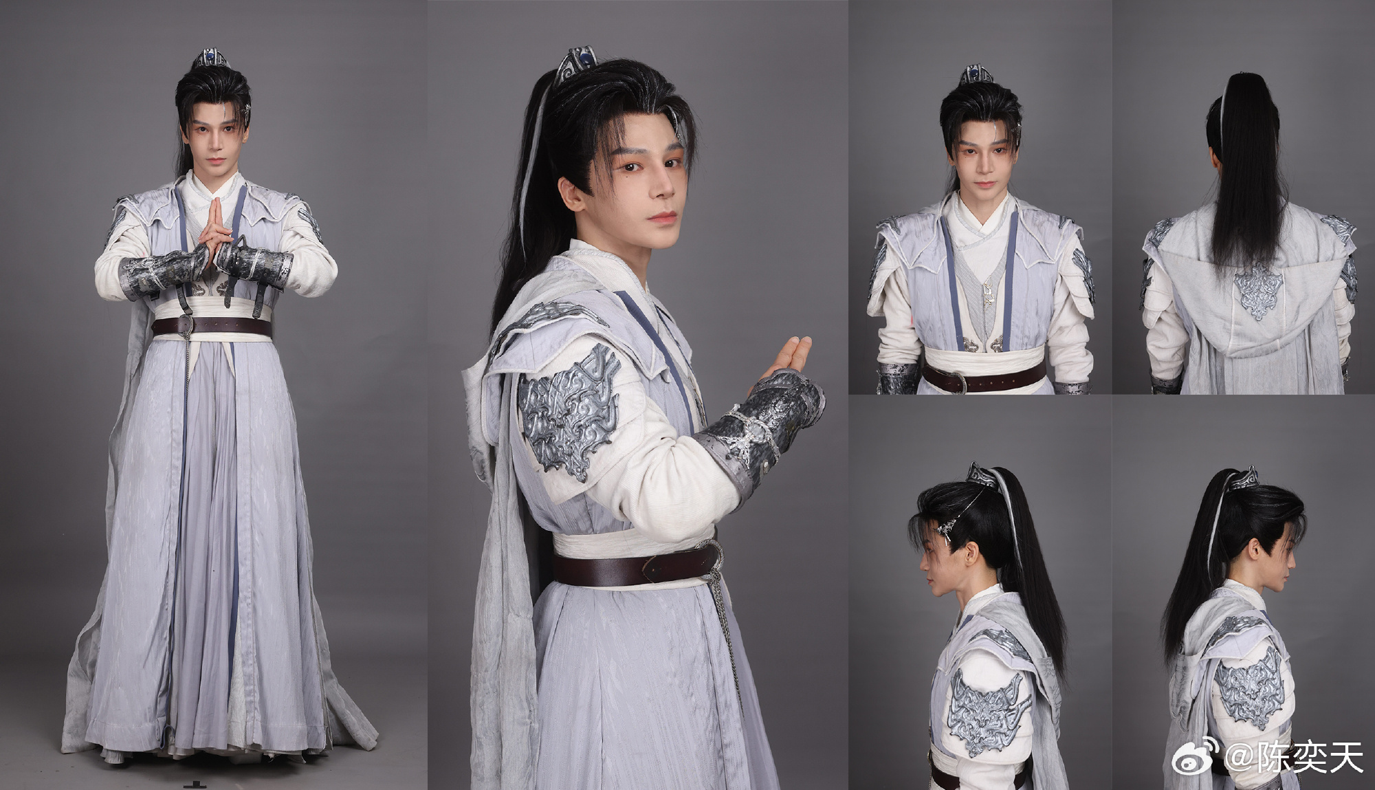 从曝光的剧照来看,陈奕天的战神造型可谓匠心独运。银白色的铠甲上雕刻着精美的纹路,在阳光下闪烁着冷冽的光芒,既彰显了战神的威严,又不失华贵之气。头戴鎏金发冠,几缕发丝自然垂落,为刚毅的形象增添了几分飘逸之感。最引人注目的是他手持的那柄长枪,枪身缠绕着龙纹,枪尖寒光凛冽,仿佛随时准备刺破长空。整体造型既符合古代战将的英武气质,又融入了玄幻元素,让人眼前一亮。
