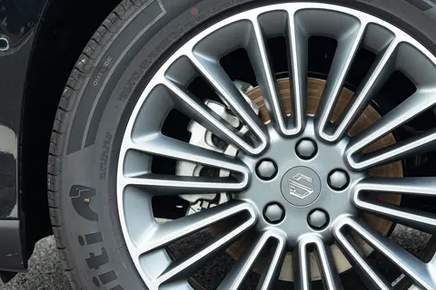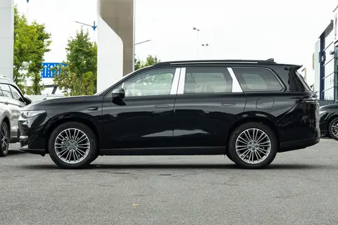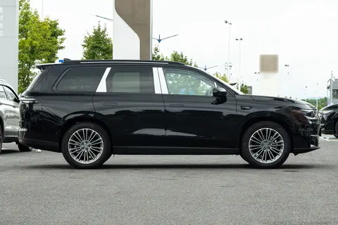 侧身视角:车身侧面造型同样与C10基本保持一致。弹出式的隐藏门把手不仅增添了科技感,也有助于降低风阻。黑色的车窗边框与车身颜色形成对比,增加时尚感。前后排均采用多层隔音玻璃,配合后排侧隐私玻璃,能提升车内静谧性和隐私保护。20英寸的枪灰色轮毂样式时尚动感,进一步强化了侧面的视觉吸引力。