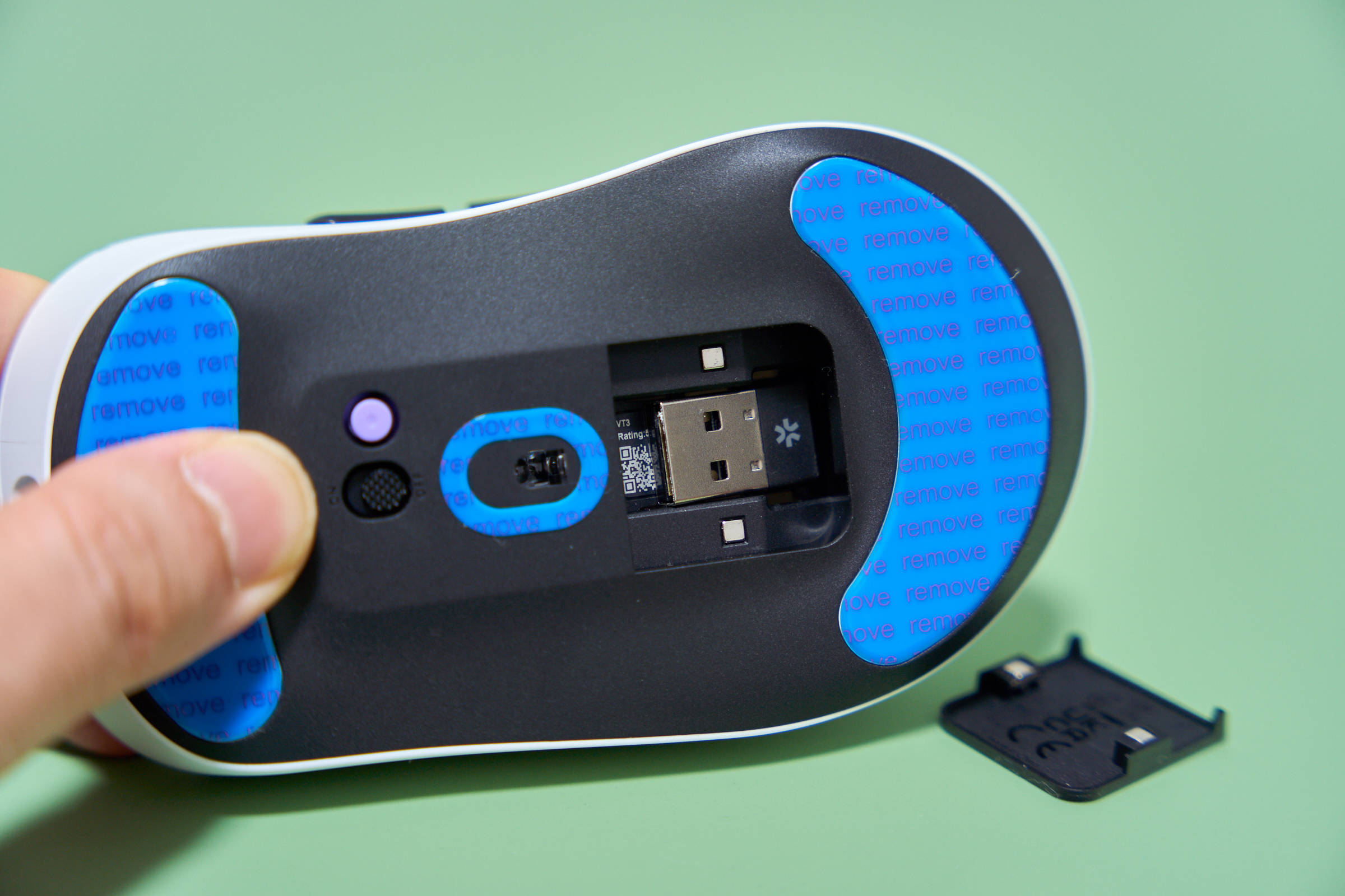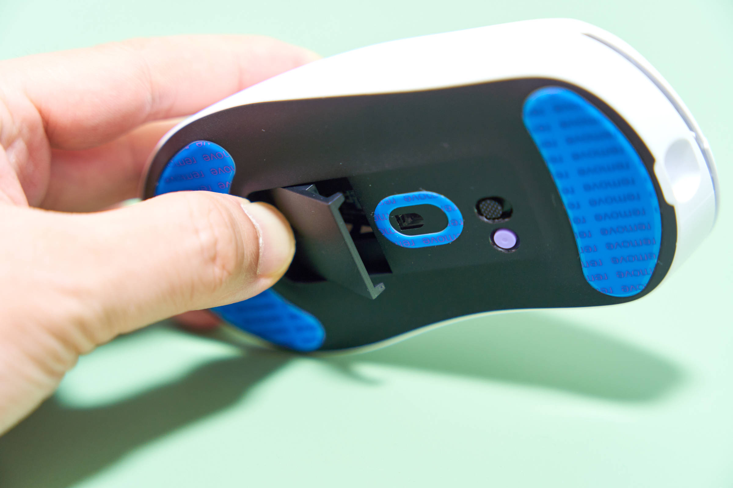 磁吸接收器收纳仓还在鼠标底部老位置,而且依然保留了雷柏防误触的DIY独立键。低阻力特氟龙脚垫是老传统了,甩枪操作行云流水。