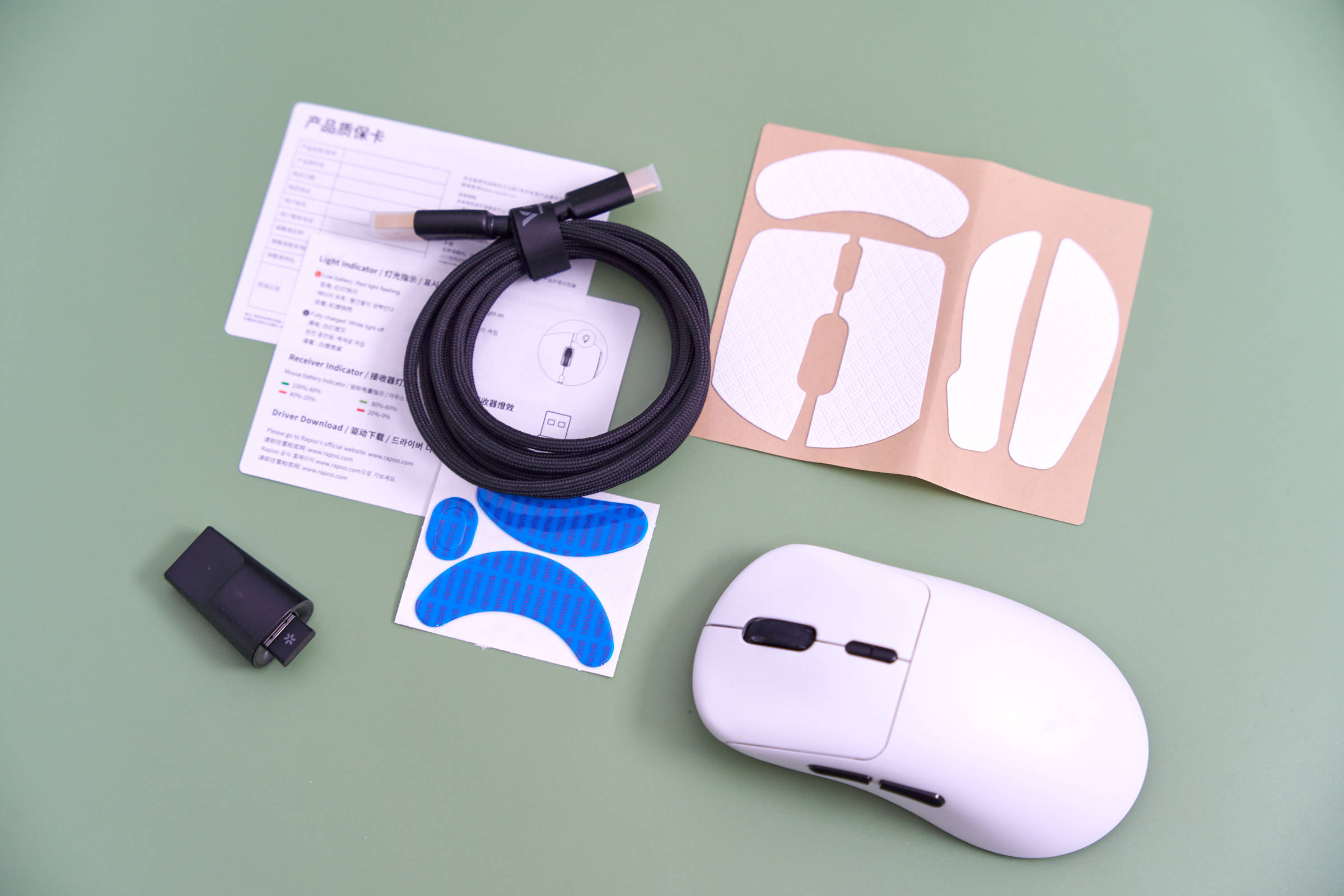 VT3和VT3Max包装内的配件都一样,1.8米带屏蔽高速数据线、USB A-C转换头、防滑贴+备用脚贴,还有不用看的说明书和保修卡。