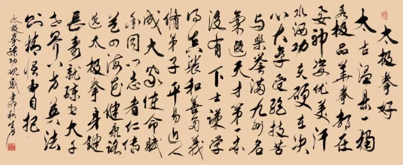 个体讲字的美构、文篇讲章法美构,书法才会在继承上发展,才能沿汉字美法道路走下去。吸收不同规律美、逻辑美,形成个人风格美。简单地说就是书法讲法度:是字构美、内容美、章法美的科学合成。
