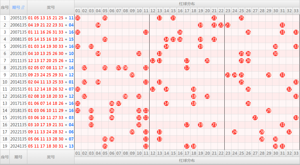 六、历史同期,红球开奖号码和走势图(历史数据演示):