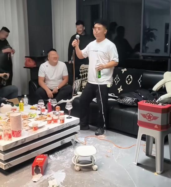 事情发生在9月20日,白天宴席还算体面,宾客散去后,几位留到二楼“继续热闹”的朋友把尺度全丢了。起头是摇晃啤酒瓶当“喷泉”,黄绿色泡沫顺着瓶身洒得到处都是,地板湿了、沙发套上留下深色印;接着有人大手一挥,把白酒倒在茶几和沙发上,地面滑得跟溜冰场似的;有人把方便面倒在头上,金黄碎屑粘满头发和地毯;零食被当礼花,薯片、坚果壳铺了一地;更夸张的是,用刚挂好的米白窗帘当手绢擦脸,立马留下一道不雅的深色印;还有几位赤膊扭动、穿鞋踩坐,把毛绒坐垫踩出凹痕。角落里一位老人默默站着,眉头紧锁——大家猜是张先生的母亲,最终打扫卫生的重担很可能落在她身上。末了,他们还扛着音响下楼继续高唱,把还在吃饭的人吵得尴尬无比。