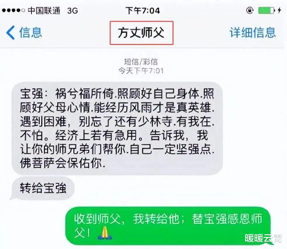真正能体现他们之间 “账目往来” 的,就是那条网传的短信。网传2016年王宝强后院失火,被最亲近的人釜底抽薪,人生跌入谷底,这时候释永信出手了,但你看他这出手的姿势那叫一个讲究。