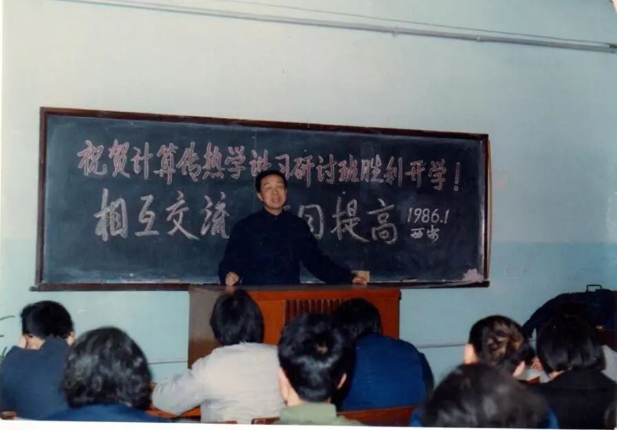 1986年,陶文铨院士创办计算传热讲习班开学照片 (照片中为西迁老教师陈钟颀教授在开班典礼上讲话)。