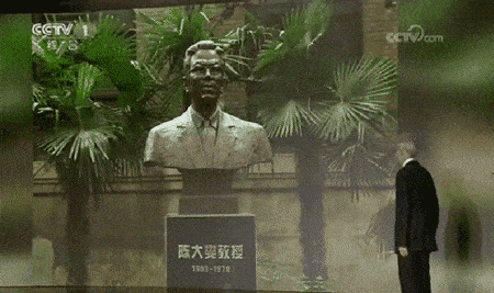 △ 2018年5月,陶文铨院士在央视《开讲啦》栏目中,讲述交通大学西迁。当屏幕上出现西迁前辈陈大燮教授塑像照片时,陶文铨院士深深鞠躬,感念交大西迁前辈对祖国赤诚的爱、对事业执着的追求、对学生无私的关怀。