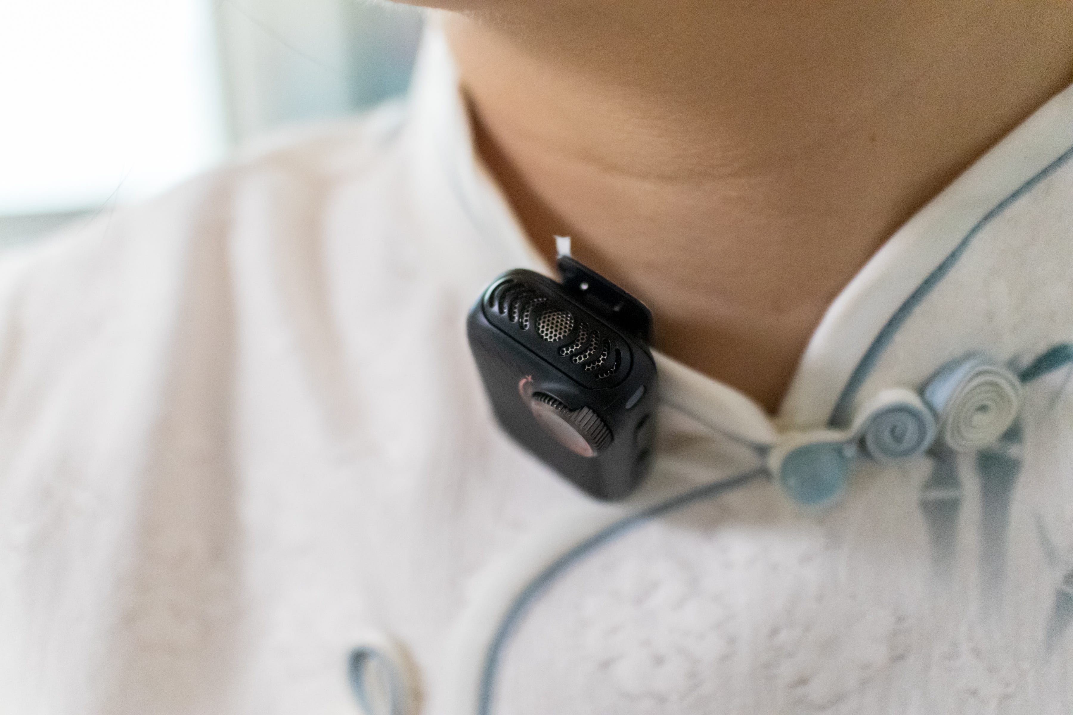 发射器的夹子设计特别贴心,夹臂采用弹性材质,内侧还附有防滑胶垫。我特意做了测试:夹在真丝衬衫领口不会勾丝,夹在厚重羊毛衫上也能牢牢固定,拍视频时走来走去甚至蹦跳都不会移位。