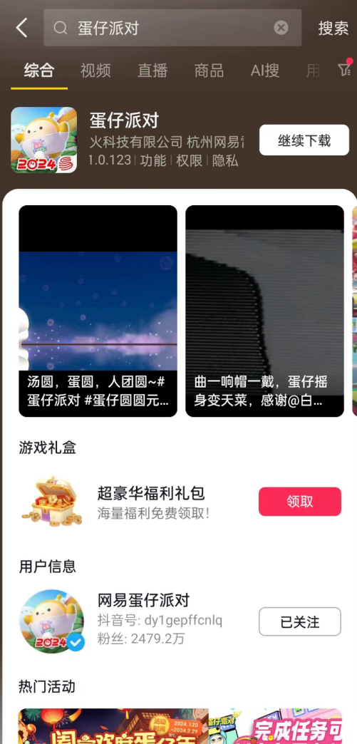 抖音游戏平台,巧妙利用搜索流量,助力厂商精准锁定兴趣人群。例如用户搜索“新春环游记”,能给用户提供相关内容的个性化的排序和展示。同时游戏搜索品专,通过新颖的样式设计吸引用户,帮助厂商精准锁定潜在用户的首次接触点,实现对下载、预约以及礼包领取等功能的需求。同时,巧妙设置的搜索彩蛋为用户带来意想不到的惊喜。