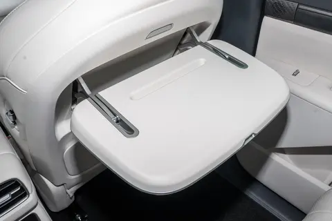 后排的二排电动魔毯座椅是全系标配的亮点配置,四分和六分腿托可以单独调节,家里老人乘坐时,升起腿托就能获得更放松的坐姿,如同坐在家中的休闲座椅上。座椅角度支持电动无极调节,可调节至36℃大,想要半躺休息也完全可行。将主副驾头枕拆除放平后,与后排座椅能拼接成2米多的L型空间,孩子可以在上面自由玩耍,成年人午休也很方便。后排配备独立空调控制,搭配双层夹胶隔音隐私玻璃,不仅能隔绝大部分紫外线,还能降低约5dB的车内噪音,家人在后排休息时不易被外界干扰,私密性也得到很好保障。二排右侧还标配了航空小桌板,自带手机槽,孩子在车上写作业或者大人处理临时工作都很实用,承重可达10kg。