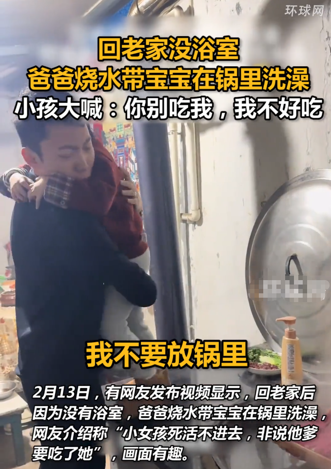 在爸爸眼里,那是童年的温暖;在女儿眼里,那是恐怖的现场。时代变了,生活条件好了,这种“铁锅洗澡”的场景确实越来越少见了。