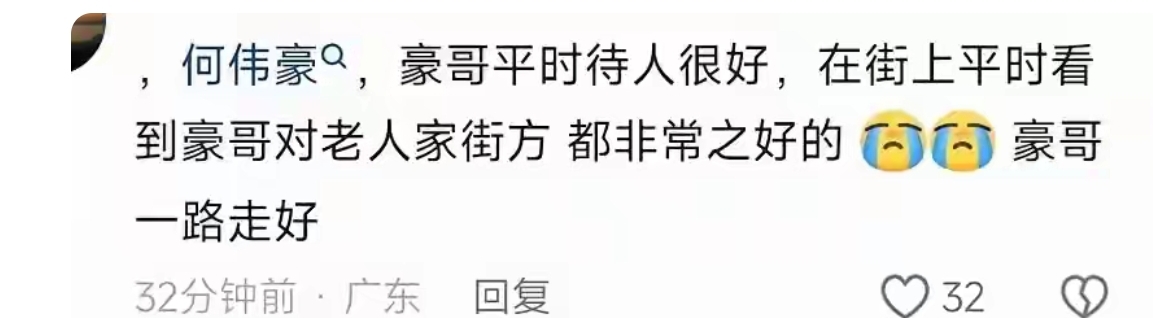 何伟豪去世后让许多网友痛心,其中香港网友最甚,特别认识何伟豪的人,这些人里有香港居民,也有何伟豪的朋友们。