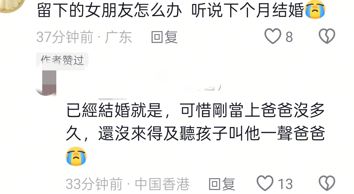 何伟豪的朋友则透露,何伟豪前不久才和恋爱长跑10年的女友结婚,且妻子已经怀孕了,他马上就能当爸爸了,可他却没能等到孩子出生,没能听到孩子叫他一声“爸爸”。