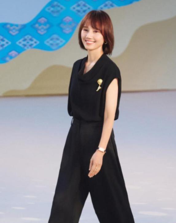 郝蕾瘦了不少,黑色西装长裙上的中式刺绣与她的温婉贵气相得益彰,显得不好惹。