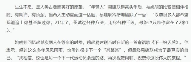 姚明的真诚回应,更是对易建联多年来在篮球领域的肯定。