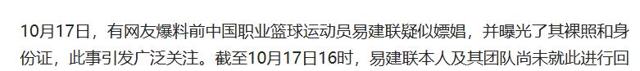 去年10月,一则称易建联疑似“私生活不检”的爆料在网上引起轩然大波。
