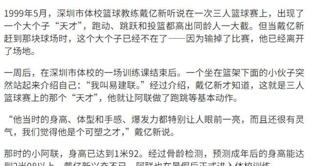 易建联超乎常人的身高以及在比赛中展现的运动天赋,立刻吸引了戴亿新的注意。