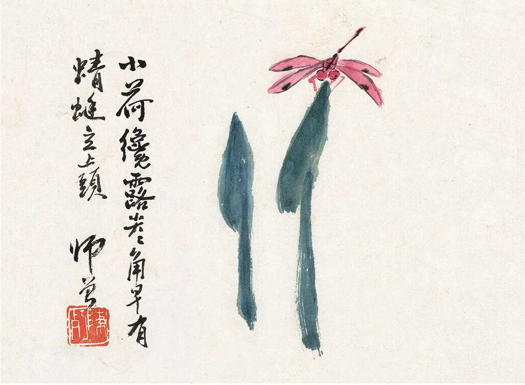 陈师曾的笔,带着股"不装"的率。他画山水喜用"生辣"的线,画花卉却偏爱"松快"的墨,这本册页里,没见他用重彩,最多薄施淡色,像给诗稿添了几个标点,不抢眼,却让诗意更醒。就像他为人,喜奖掖后进,帮齐白石"破门而出",笔墨里也带着这份通透——不炫技,只说心里话。