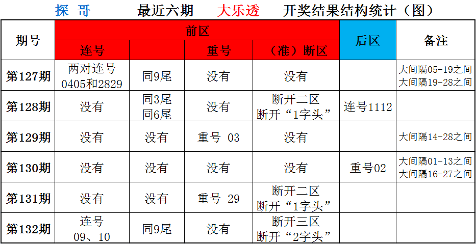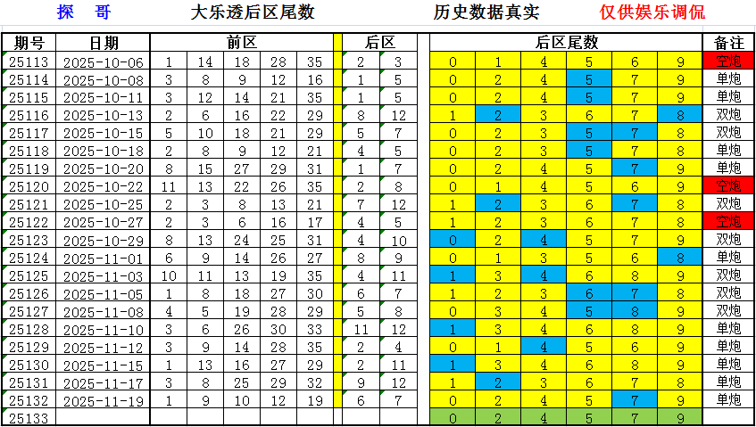 第132期后区胆尾:024579尾,开07,“单响炮”;