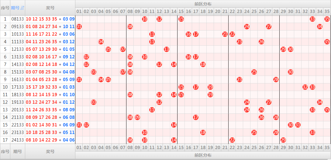 六、历史同期,前区开奖结果和走势图(历史数据演示):