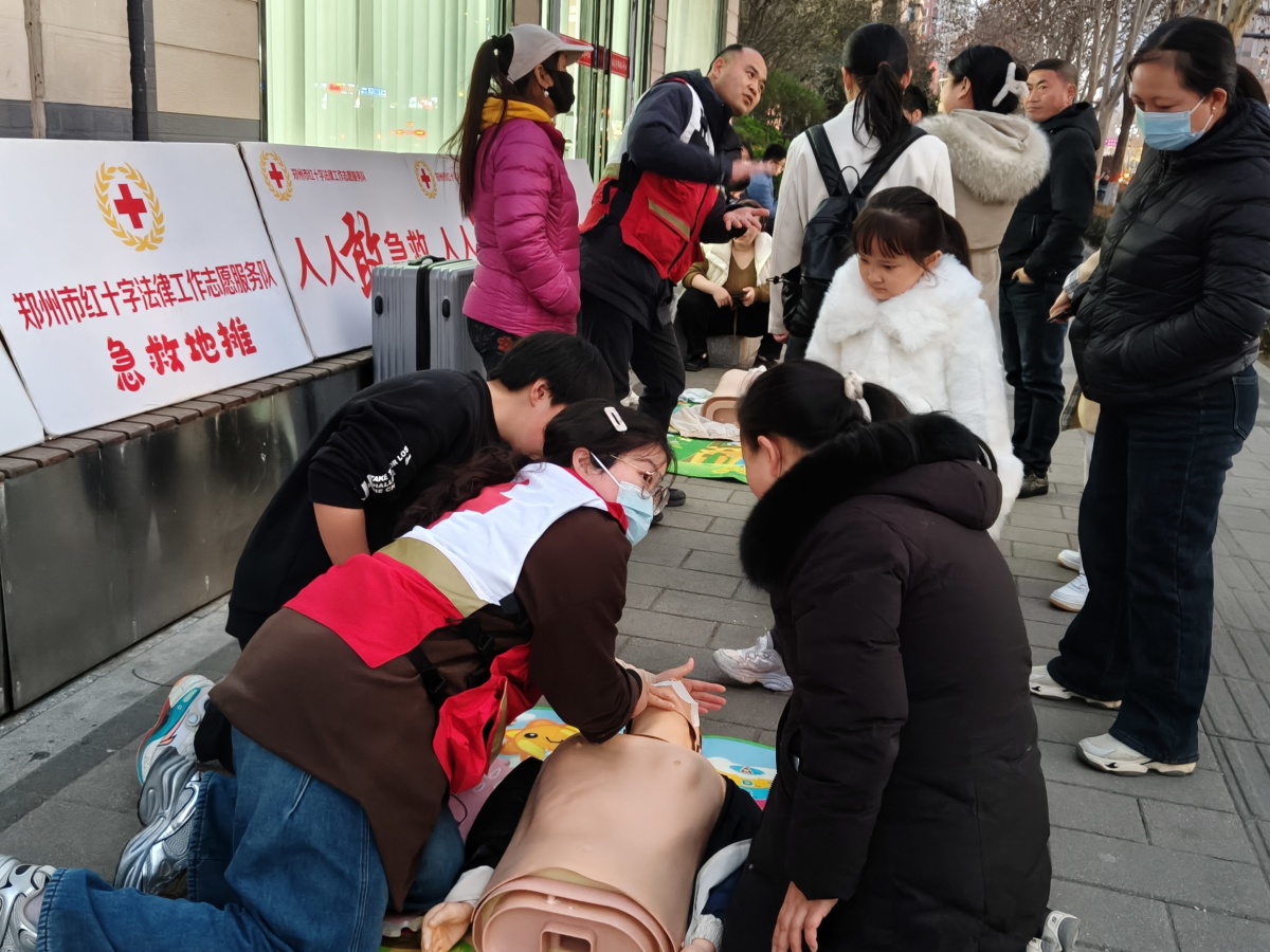 “急救地摊”的摊主们,是郑州市红十字法律工作志愿服务队的志愿者。大家挤出休息时间义务出摊,传授急救知识和技能,初心很简单:人人学急救,人人会急救,人人敢急救,人人得急救。