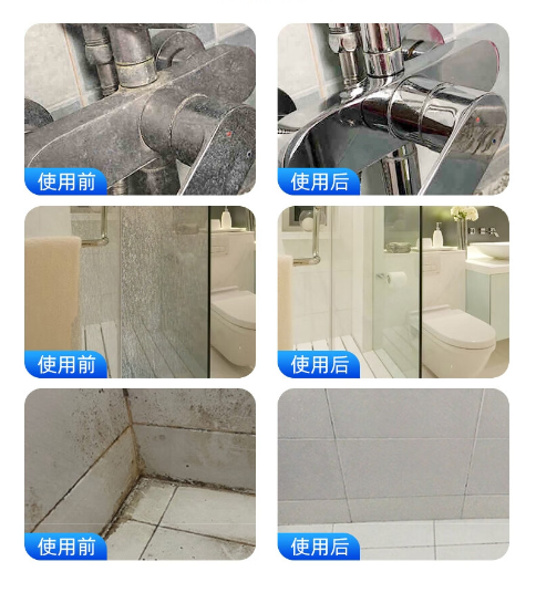 产品主打“免费力刷洗”设计,搭配精准喷头,可直接对准水龙头、花洒等小范围污渍喷洒,5分钟内就能快速溶解顽固水锈,一瓶即可替代瓷砖、马桶、花洒等多款专用清洁剂。每瓶仅需10-20元,即便面对老旧浴室的陈年重水垢,清洁效果也十分出众,妥妥的“性价比天花板”。
