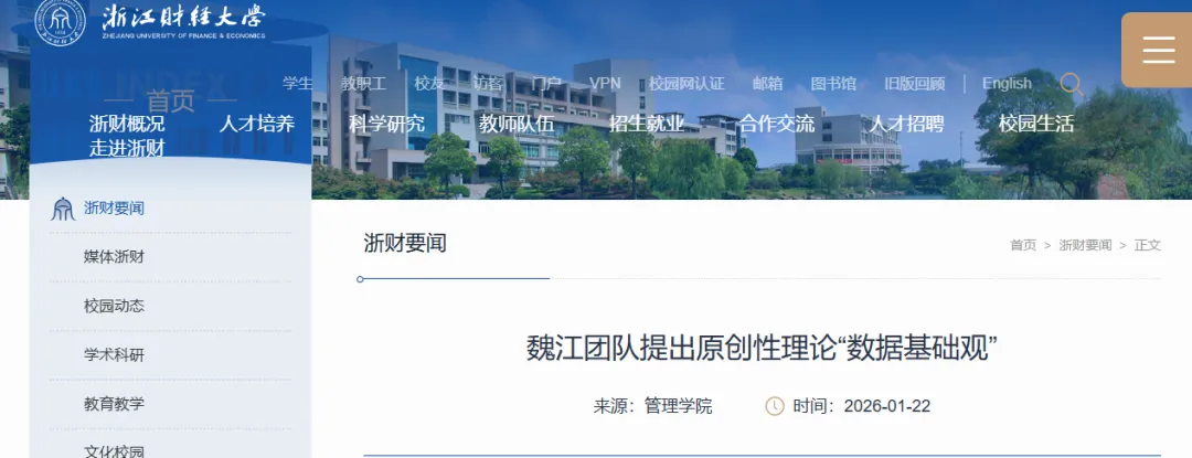他在浙大那边全球浙商研究院院长的身份也没放下 , 依旧挂着名 ,就在2025年年底 , 他跟同事一块写的文章 , 《企业数据基础观的构建》 , 刚发在了《中国社会科学》上, 这给他的学术生涯又加了浓重的一笔。