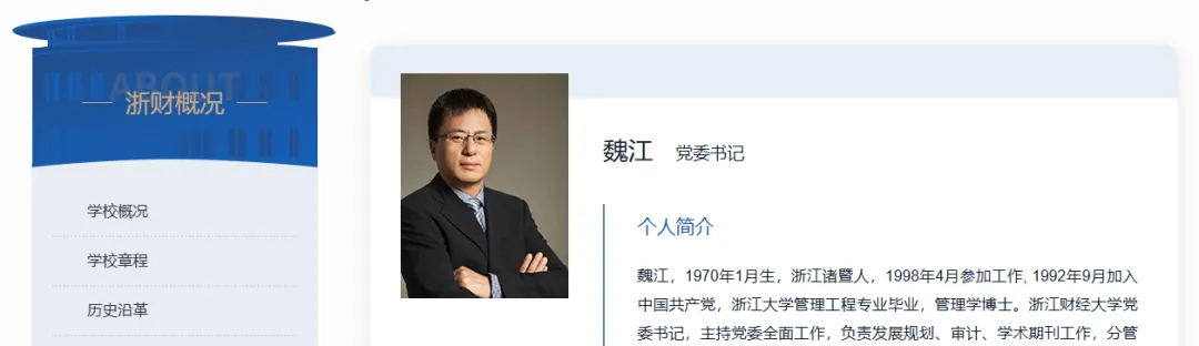 简单来说 , 这位是一位学者型干部 , 路径是从浙工大到浙工商一路跨校而来 , 他2011年以"钱江学者"的身份进驻浙工大 , 一待就是十一年 , 从管理学院的执行院长一直当到院长 , 2022年他跳到浙工商做副校长 , 又在那里工作了三年多 , 如今他又迈出新的一步 , 落脚在了浙财.