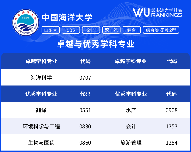 山东大学以22个优秀学科专业位居第一,中国海洋大学7个优秀学科专业位居第二,中国石油大学(华东)3个优秀学科专业位居第三。