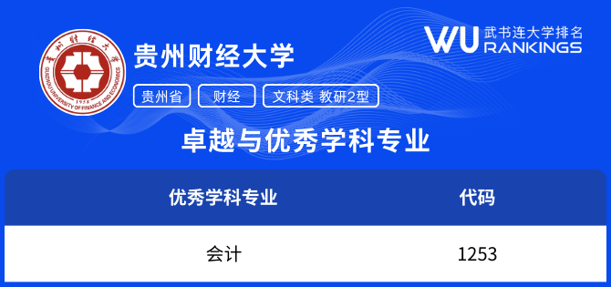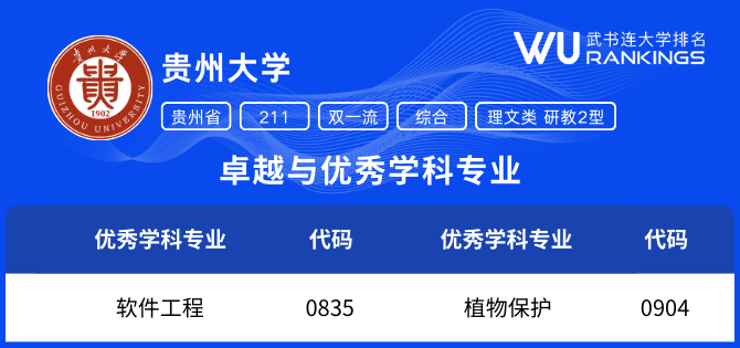 贵州大学2个优秀学科专业,贵州民族大学、贵州财经大学各1个优秀学科专业。