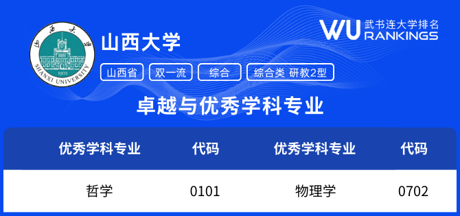 山西大学、山西财经大学各2个优秀学科专业,太原理工大学、山西医科大学各1个优秀学科专业。
