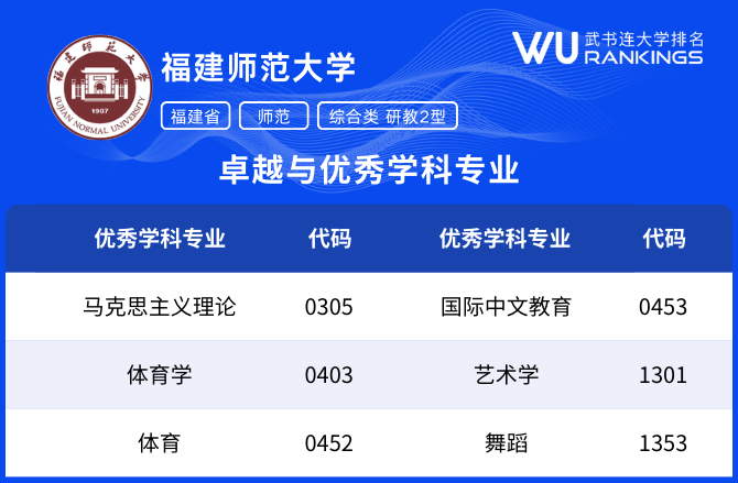 福建省大学32个学科专业获优秀学科专业,占全国优秀学科专业总数(1727个)的1.85%;其中卓越学科专业2个,占全国总卓越学科专业(357个)的0.56%。