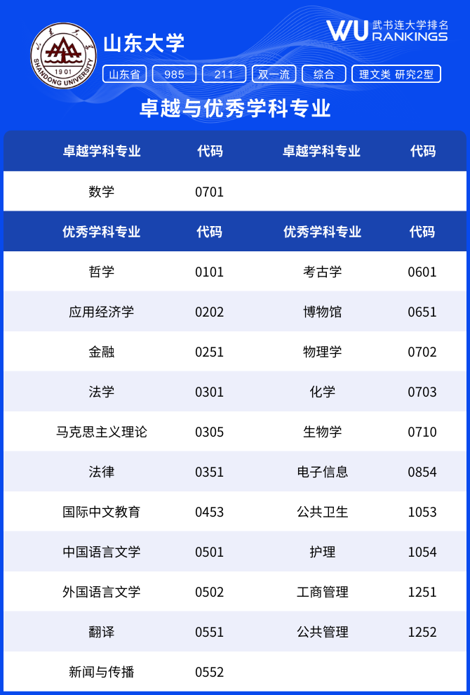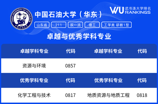 山东大学1、中国海洋大学、中国石油大学(华东)各1个卓越学科专业。