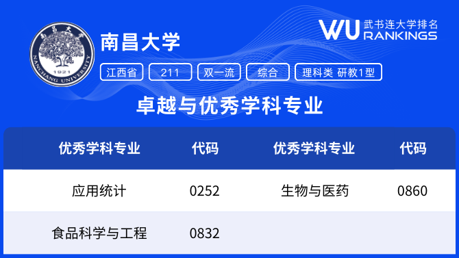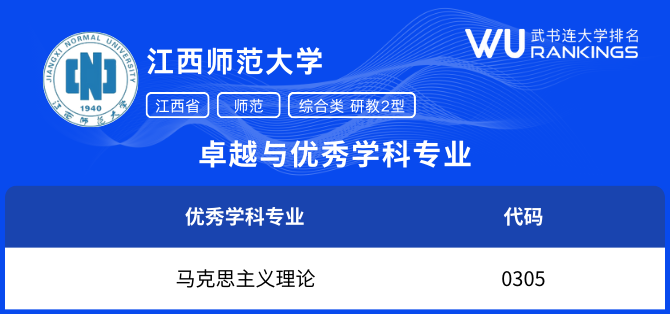 南昌大学3个优秀学科专业,江西财经大学2个优秀学科专业,景德镇陶瓷大学、江西师范大学各1个优秀学科专业。