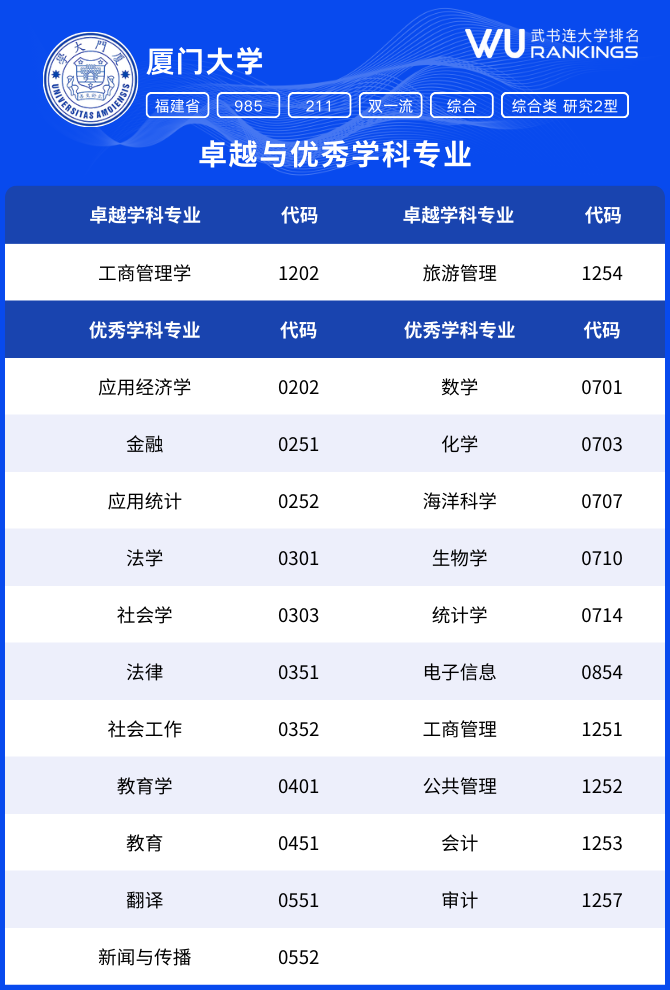 厦门大学以23个优秀学科专业位居第一,福建师范大学6个优秀学科专业位居第二。