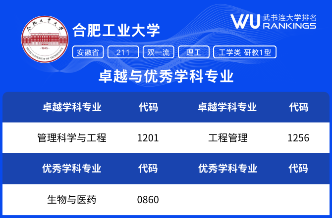 中国科学技术大学6个卓越学科专业,合肥工业大学2个卓越学科专业。
