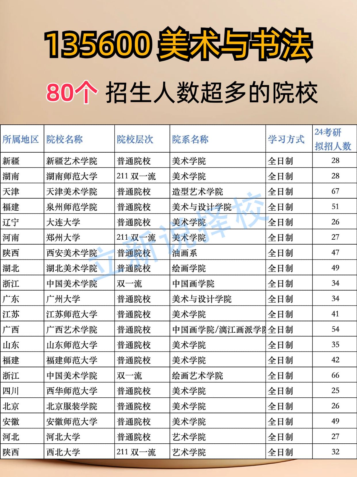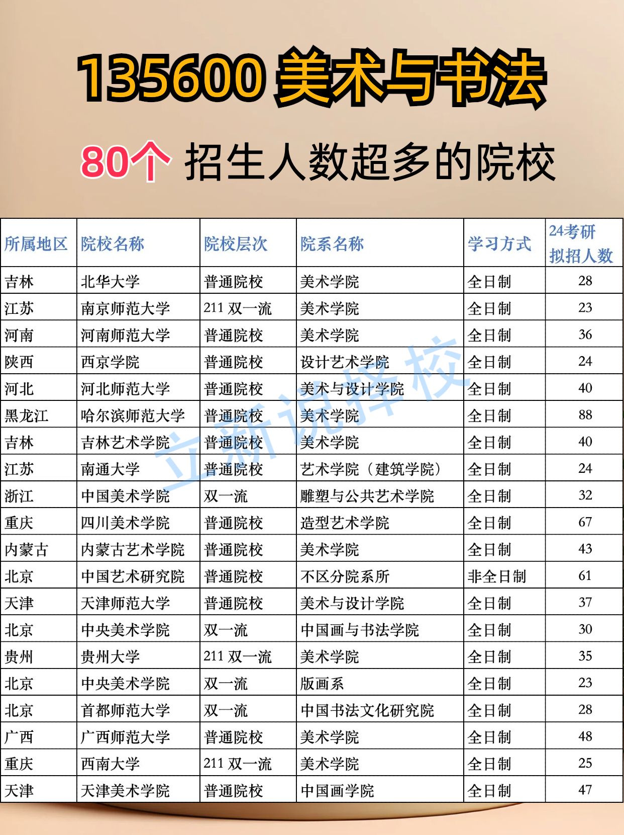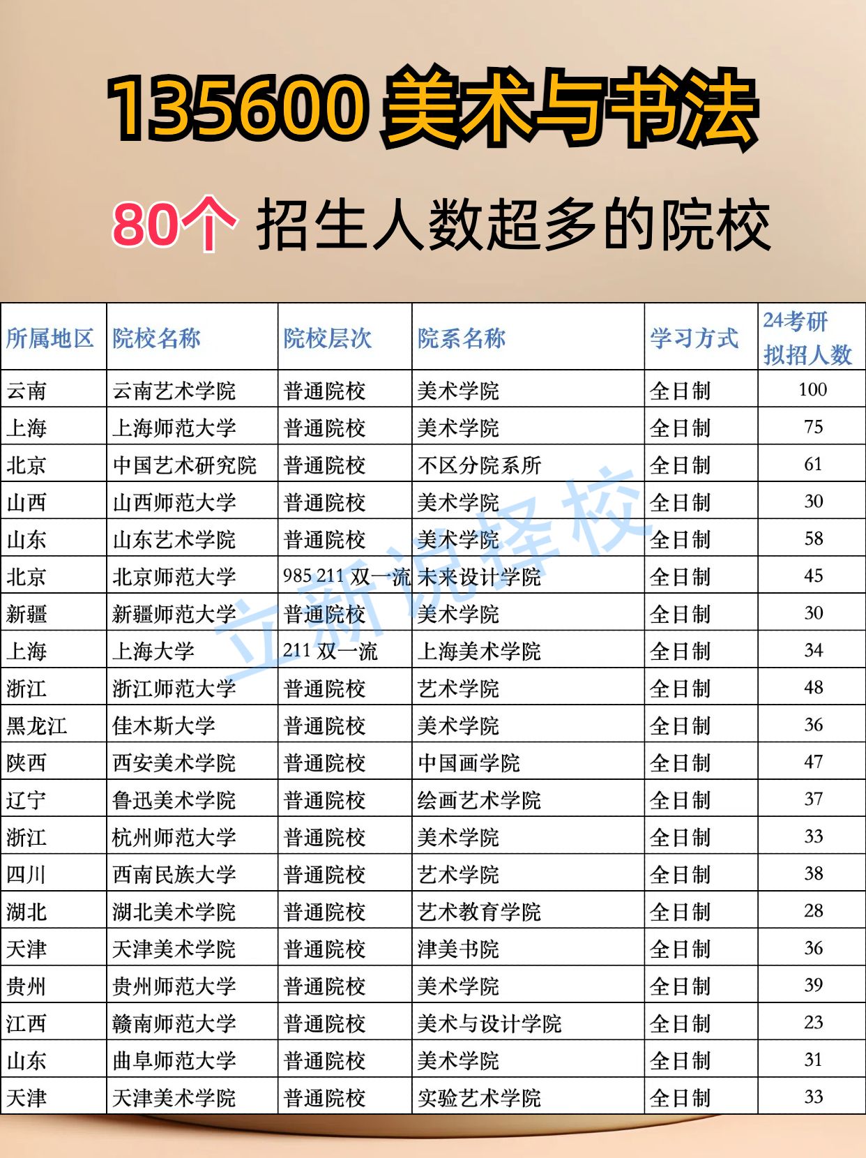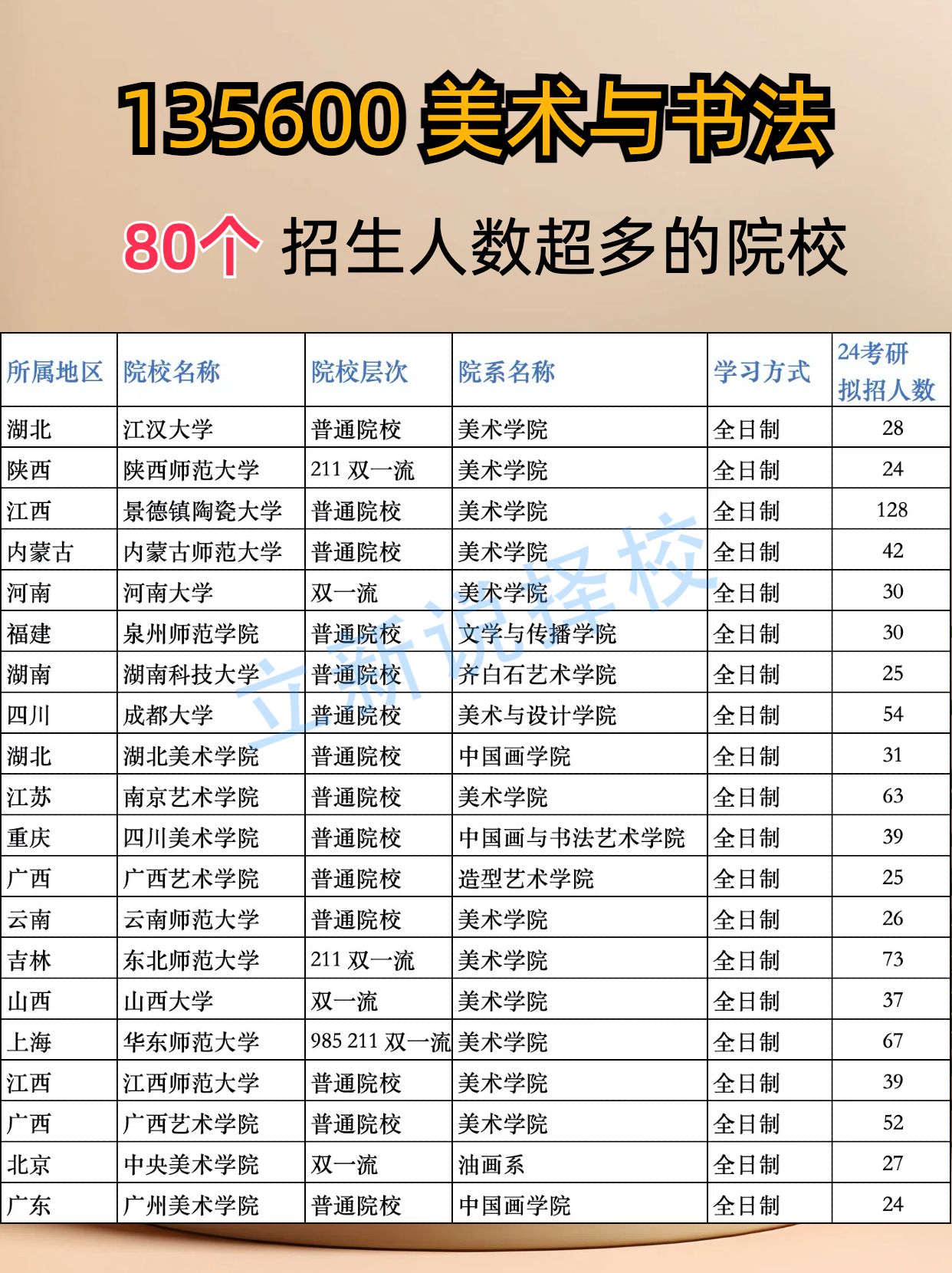 这里更新的是【2024考研】中,【135600美术与书法】招生人数超多的院校