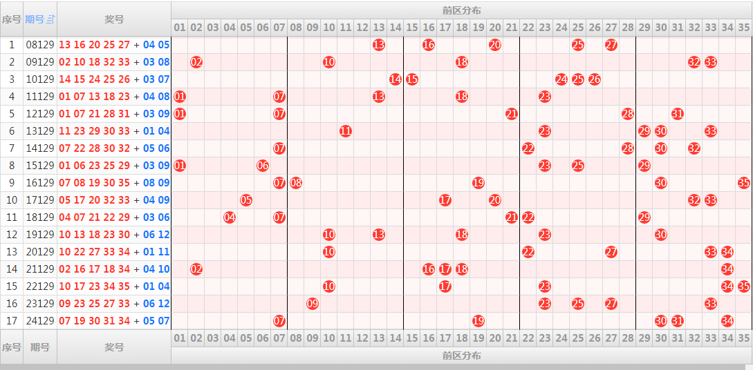 六、历史同期,前区开奖结果和走势图(历史数据演示):