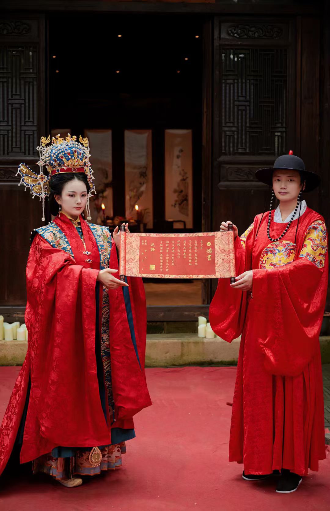 我朋友没办法,和男朋友商量后,花了几千块钱,在网上买了汉服婚服。