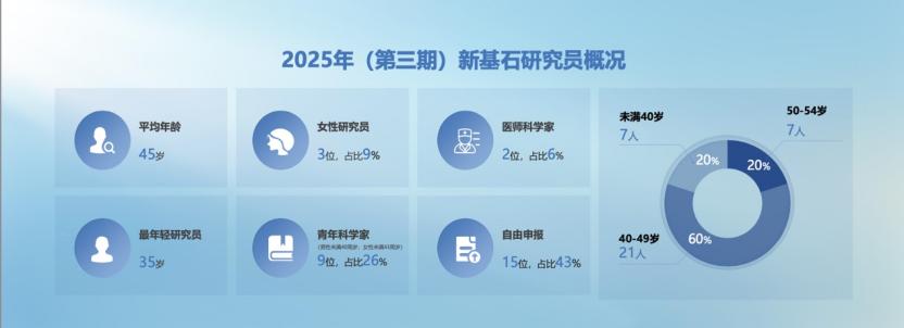 助力更多青年科学家脱颖而出 第三期“新基石研究员”共有35位,其中,数学与物质科学领域19位,生物与医学科学16位。