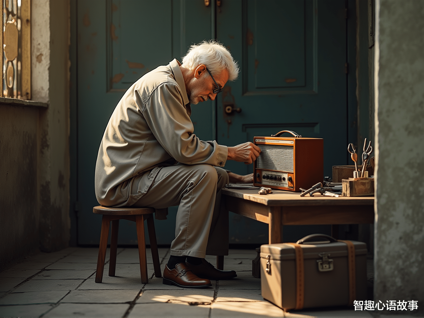"老张头,我这收音机滋啦响能修不?"李大爷颤巍巍递来台红灯牌收音机。